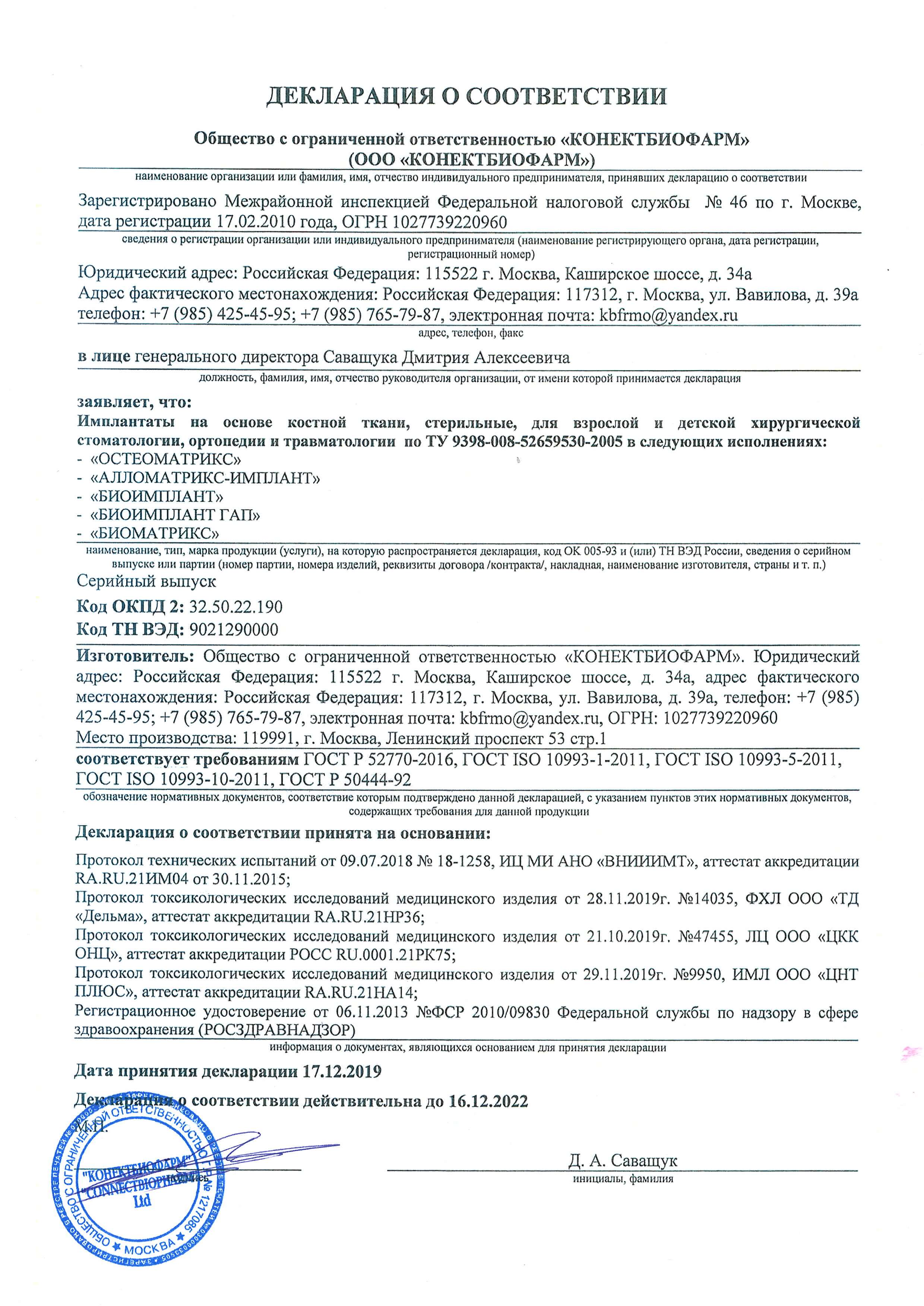 OSTEOMATRIX/ОСТЕОМАТРИКС ОСТЕОИНДУКТОР