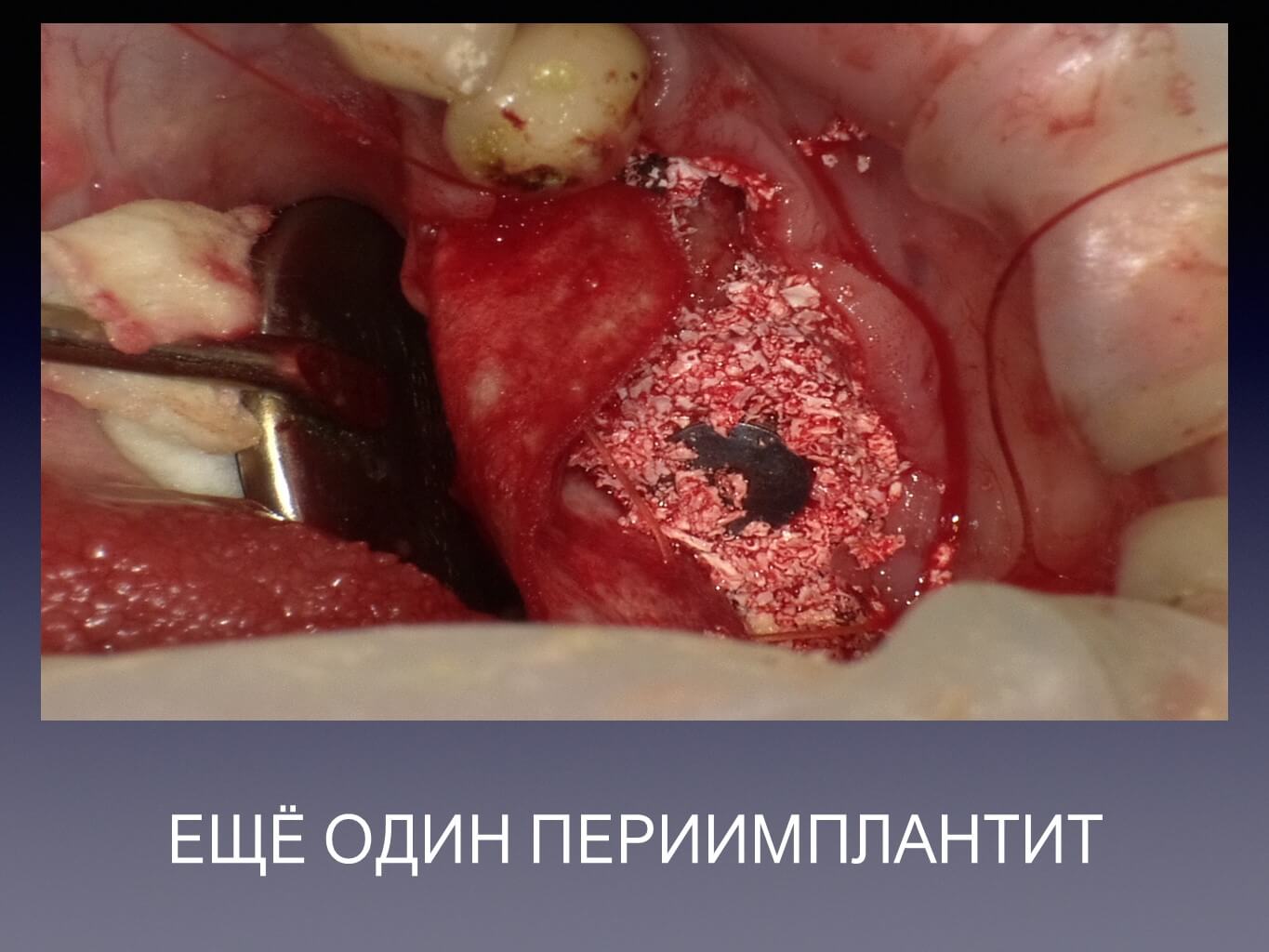 Обратите внимание на обработку кости и самого имплантата при помощи местного применения антибиотоков.