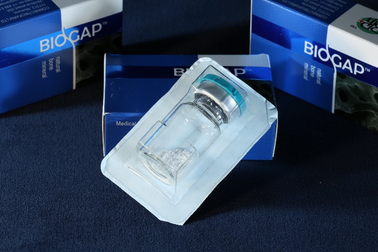 Остеокондуктивный пористый материал, имеющий макро и микро структуру схожую с человеческой костью. За счет отсутствия антигенности и имуногенности материал характеризуется высокой биосовместимостью с костной тканью человека. Пористая структура надежно поддерживает объем имплантируемого участка, под воздействием остеокластов и остеобластов облегчает формирование образования новой кости. При этом является протектором для прорастания эпителия.